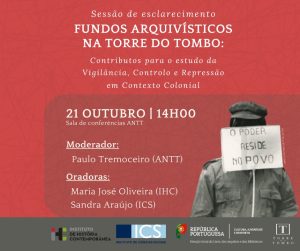 A investigadora Sandra Araújo será uma das oradoras convidadas da sessão de esclarecimento “Fundos Arquivísticos na Torre do Tombo: Contributos para o Estudo da Vigilância, Controlo e Repressão em Contexto Colonial”