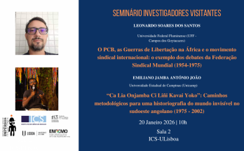 Seminário de Investigadores Visitantes, 20 Janeiro, entre 10h e 12h, um evento do GI Impérios com o objetivo de apresentação dos resultados preliminares das pesquisas em andamento. Leonardo Santos (UFF) e Emiliano João (UNICAMP) apresentam suas pesquisas de doutoramento.